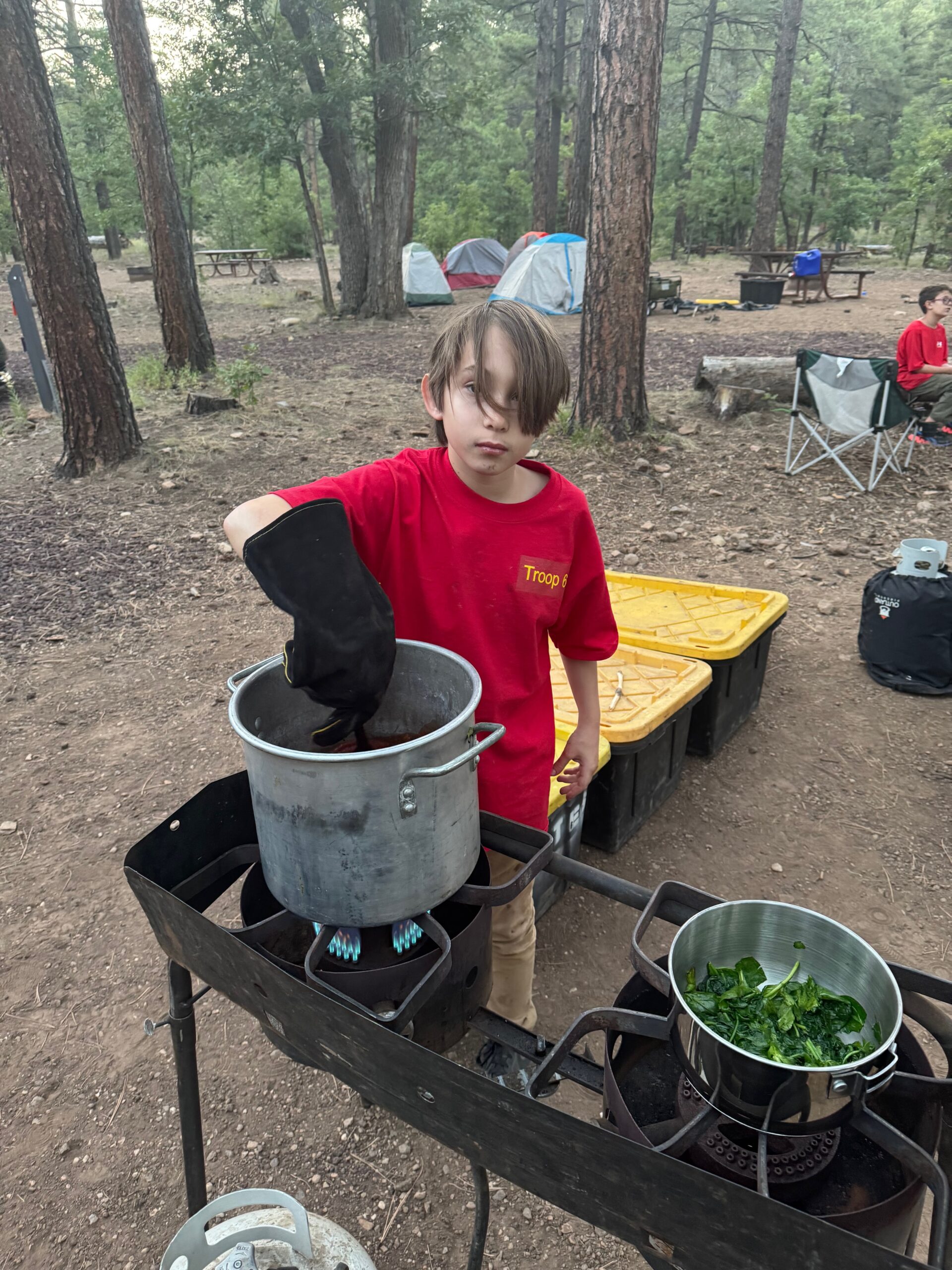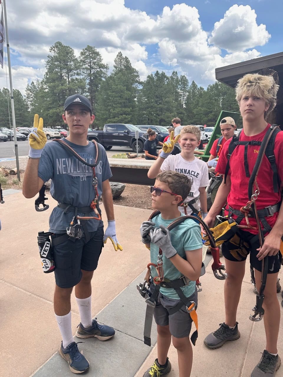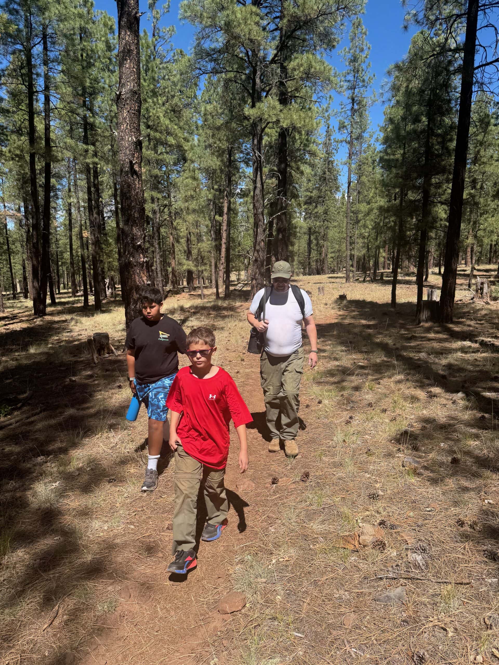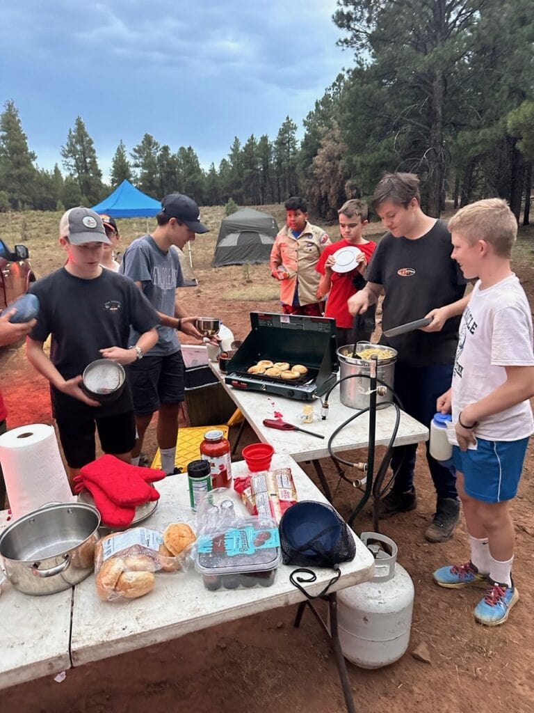 Six scouts and their adult leaders set out to backpack into the Fossil Springs Wilderness area at the confluence of the Tonto and Coconino National Forests. The trailhead starts out on Deadman Mesa west of Strawberry, and drops steeply down 1,500 feet into the Fossil Creek Canyon below over 4 miles of exposed switchbacks. Once in the canyon, however, the reward is access to another of Arizona’s spectacular riparian areas.